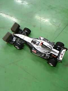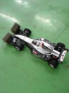 これがバンパー装着のF-1の姿・・・ ちなみにリアウィングももげていてテープで貼り付けた状態 リアウィング無しで走っているとエスティマが後ろからF-1の上を乗り越えて抜いていく、いくらインをしめても無意味です |