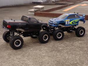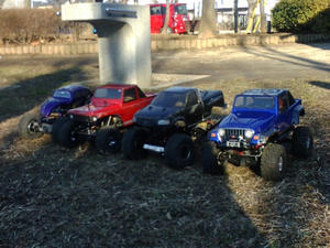 仲間内でもクローリングマシンが増えてきました これはむがりおんさんが購入したCR-01 組み立てが間に合わずサーキットにて半日かけ完成 ボディまでは作れず取り敢えず余ってたインプを載せてます のりまきさんは購入済みNさんはスコピを購入したとの事でその走りが楽しみです |