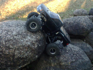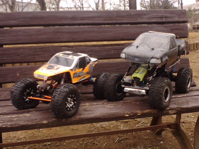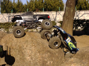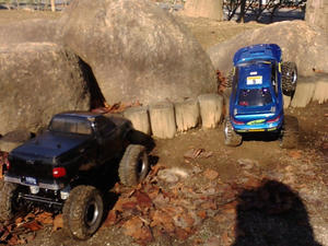 近くの公園にクローリング出来そうな場所が有ったので試しに走しらせてきました 石のサイズが大きいので2.2クラスのシャーシではちょっとつらいですが うまくライン取りすれば走れました 弄った後の試し走り位ならつかえそうです なりより近いので |
