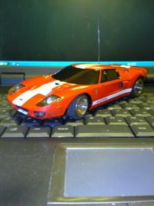 02はずっとMMで走らせてましたがここのところどうもリヤタイヤが喰わず、いまいちだったのでRMにチェンジしてみました ボディは360モデナでホイールはフォードGTにあわせたチタンホイールでぴったり セッテングはそのままで走らせてみたところフォードではアクセルオフでけつが出ていたのですがモデナでは挙動が乱れず走れました やはりリヤマウントのおかげでリヤグリップが増しているんですかね |
