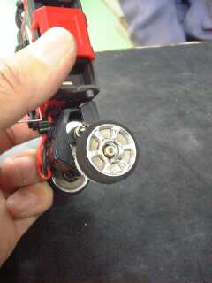 数回走らせただけですが、AWDのリアナックルに亀裂が入ってました 他の人の話でも弱いとは聞いてましたが・・・ 普通はここでアルミにするのでしょうがまだセッテングも出てないし 取り敢えずプラのノーマルとキャンバー3.5°の物を買ってみました |