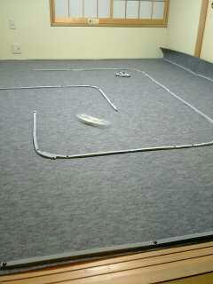 畳はグリップ最高なんですが段差に引っかかり挙動が乱れる そこでサーキットでも使用されているパンチカーペットを購入しました ホームセンターで273cm幅を350cm買って、値段は約4千円でした 多少うねりは有りますが良い感じで走れる様になりグリップ、ドリフトどちらも楽しめます 何より冷暖房完備で何時でも走れるというのは大きいですね 1/10の頃は走らせる場所に苦労し季節天気に左右させられましたからね |